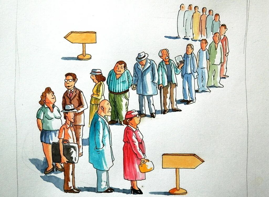 仔细观察,我发现了一个秘密:洋人排队,不在乎浪费空间,他们排队占用一里,由我们来排,大概半里就够。因为他们人与人之间通常保持相当距离,没有肌肤之亲,也没有摩肩接踵之事。