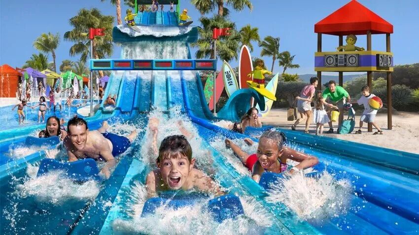 乐高乐园每年夏天都会推出 Water Park 水上乐园,将水上游乐设施和乐高积木结合在了一起。小宝宝玩的小滑梯,大孩子玩的人造浪池,以及大人玩的大型水滑梯全部都有!