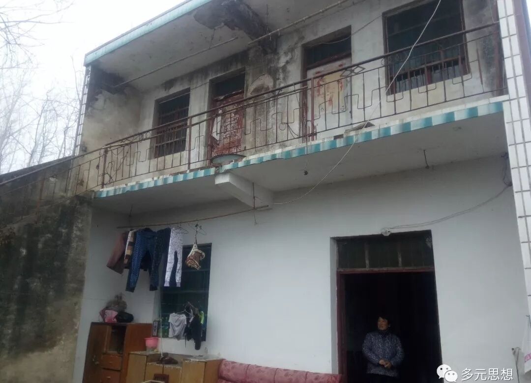 大雾天加上折腾,又过了两个小时才到了马店,以前的记录显示老兵沈俊伯不住在镇上,是住在乡下,便电话联系老人家的孙子沈先生,不一会儿,沈先生赶来,送我来到离镇上数华里的乡下,到了抗战老兵沈俊伯的家,一个非常小的农家院落,由两间废弃的老屋和两层也很破旧的“新屋”组成。