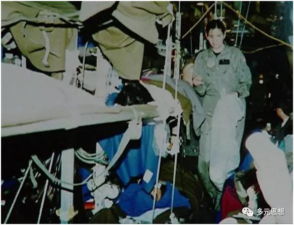 阿拉斯加本来人烟稀少,可是机场一下子来了一百多个志愿者,当地的华人几乎都出动了。每一副担架由两个空军士兵抬,配一个华人当翻译。一进医院,第一件事就是把伤员的鞋子、皮带用剪刀剪掉,衣服都脱掉。送到X光室,检查肝、肾、脾有没有受伤。然后就送到病房去。病房里有一个护士长是华人,挂预备役军衔,会讲中国话。