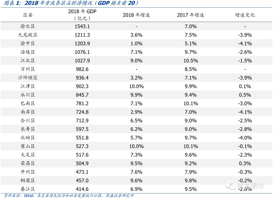 1. 18年大渡口区、南岸区和渝中区GDP增速下滑幅度大于4个百分点