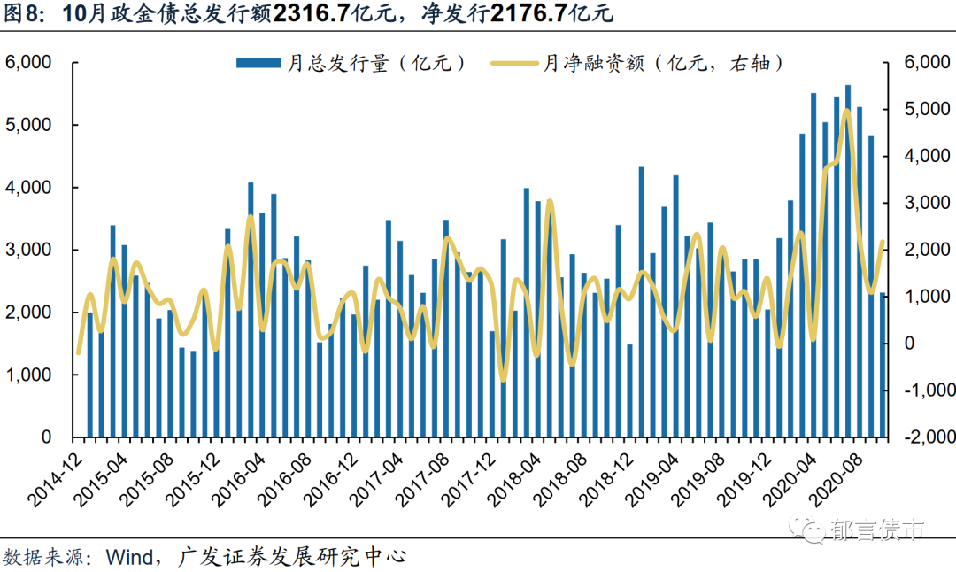 根据Wind地方债数据,截止10月26日已发布的发行计划(至10月30日),2020新增地方债发行进度:一般债9526亿元,全年额度9800亿元;专项债35414亿元,全年额度37500亿元。其中专项债除2000亿元作中小银行资本金额度,接近发行完毕。