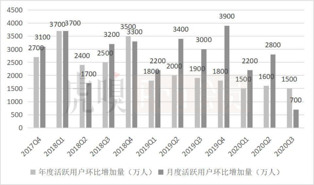 据阿里最新财报显示,截至2020年三季度末,阿里年度活跃消费者达到7.57亿,环比增长1500万,月度活跃用户达到8.81亿,仅环比增长700万。但从下图可看出:无论年活还是月活,环比增加量几乎创历史新低,尤其是Q3月活。