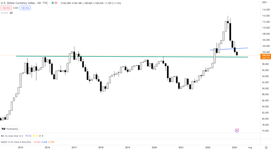 美元指数 USDX —— 月线图(2月2日)