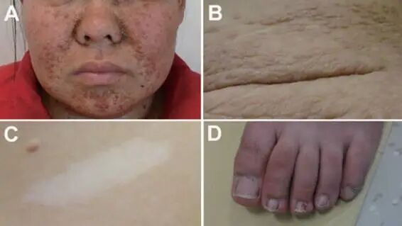 图:结节性硬化症患者的皮肤改变