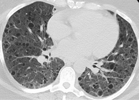 除了罕见病之外,常见病也经常会出现弥漫性囊性病变的表现,如支气管扩张、肺纤维化、肺气肿等疾病都可能出现,这也是我们需要注意的,但一般来讲,这些常见病非常容易诊断,一般不构成鉴别诊断的困惑。
