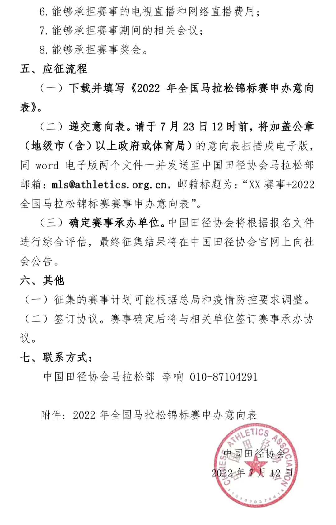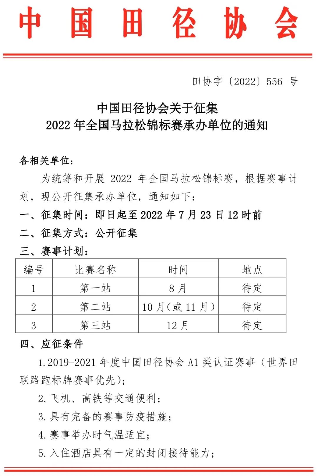 7月12日,中国田径协会发布了关于征集2022年全国马拉松锦标赛承办单位的通知,通知显示:2022年全国马拉松锦标赛计划举办三场,其中第一场计划是在8月份举办。