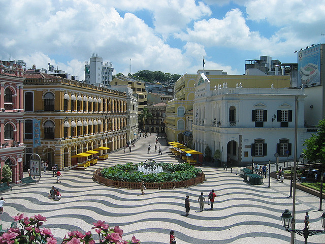 议事亭前地:本地居民又称此地为「喷水池」。开埠至今议事亭前地一直是澳门的市中心,两侧建筑建于19世纪末20世纪初。