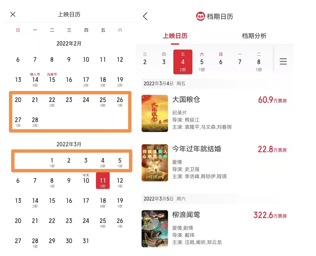 回顾2011-2015年的月票房数据,会发现这五年3月票房始终垫底。原因在于,观众的观影热情、消费能力,在春节期间被充分消耗,3月因此成为“冷却期”。但近几年3月票房的体量有显著提高,基本上稳定在全年中游,主要得益于科学的档期分布。很多中小体量的文艺片、纪录片瞅准了3月窗口期,再加上奥斯卡、柏林颁奖季刚过,部分获奖电影也被适时引进,小型春季文艺片档期逐步形成,一定程度上填补了3月票房真空地带。2022春节后:《花束般的恋爱》《纽约的一个雨天》《柳浪闻莺》2019春节后:《过春天》《地久天长》(柏林)《波西米亚狂想曲》(奥斯卡)2018春节后:《三块广告牌》(奥斯卡)《水形物语》(奥斯卡)只是今年奥斯卡为错开2月的超级碗和3月的冬奥会,颁奖礼延期到了3月底,使得今年3月无奥斯卡获奖片引进。进口片方面,由于众所周知的原因,国产片能占据更好档期,而进口片通常会被拿来填补相对冷清的档期。3月份大盘跌至冰点,两部进口大片被允许救市。其中《神秘海域》是美国2月中旬上映的“旧片”,内地定档3.14,迟了1个月。《新蝙蝠侠》直到2月14日才公布确认引进的消息,一通紧锣密鼓,档期最终定在3.18,比北美晚两周。![]()