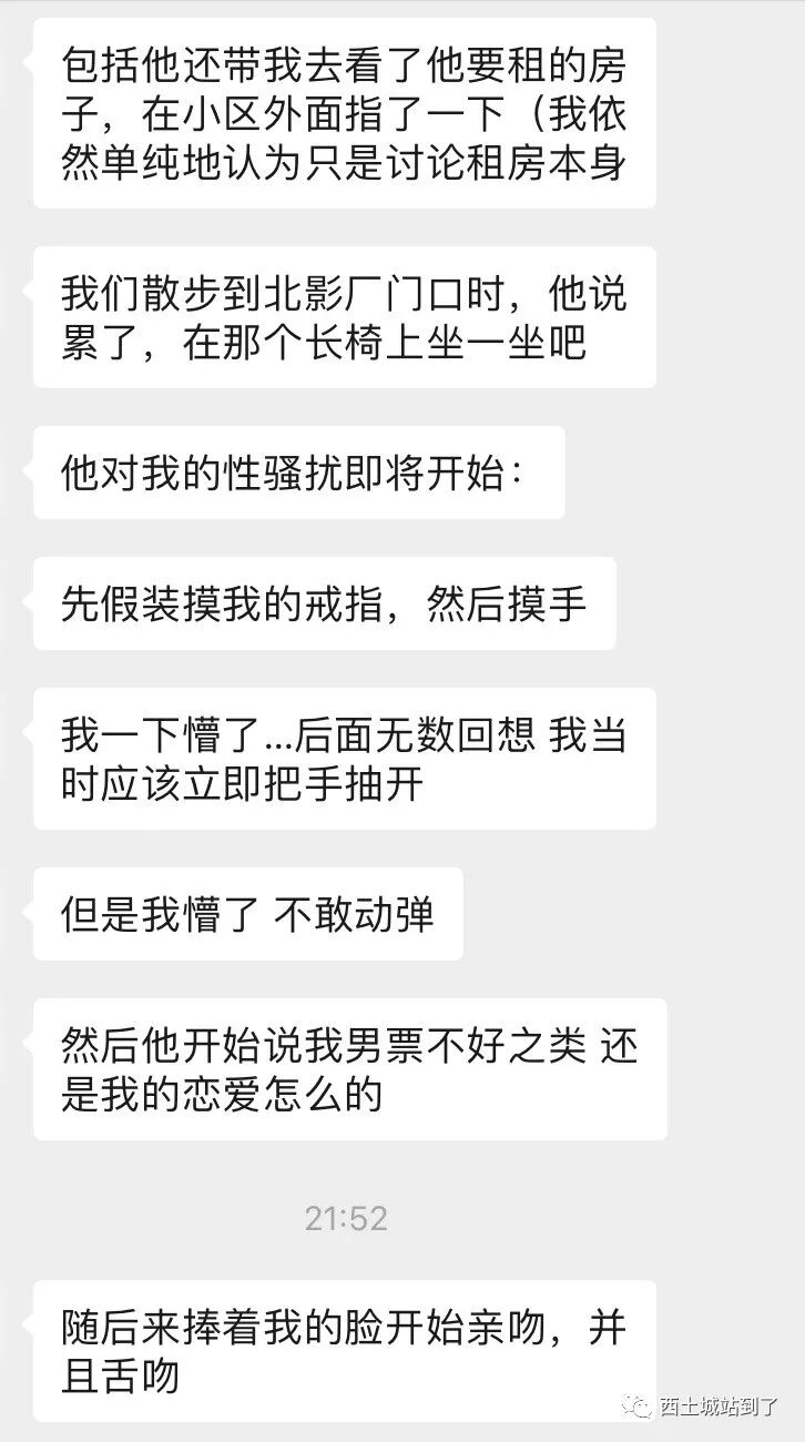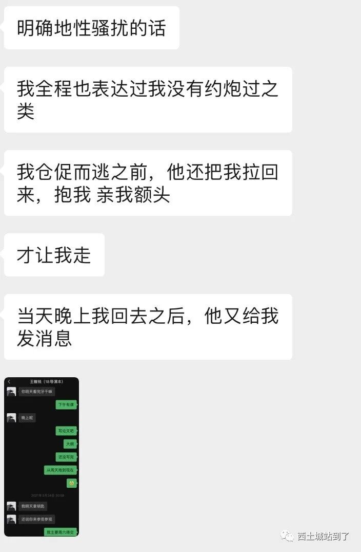 在B发完朋友圈之后,还有D和E两位女生表示自己同样遭受过王鳆锐的骚扰,可是她们暂时没有勇气站出来为自己发声,于是我们匿名收到以下D和E的自述。