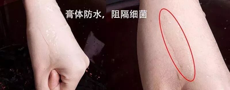 神奇的是,这层防护膜是防水的,这样就可以阻隔外界细菌侵入溃疡伤口,同时也让伤口充分吸收膏体成分,缓解疼痛,促进伤口恢复。