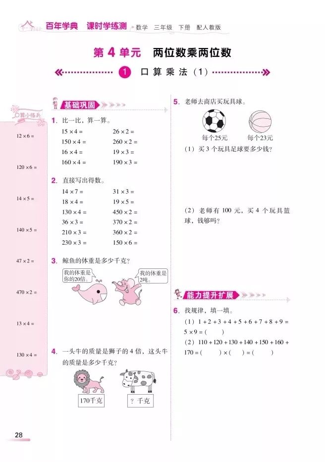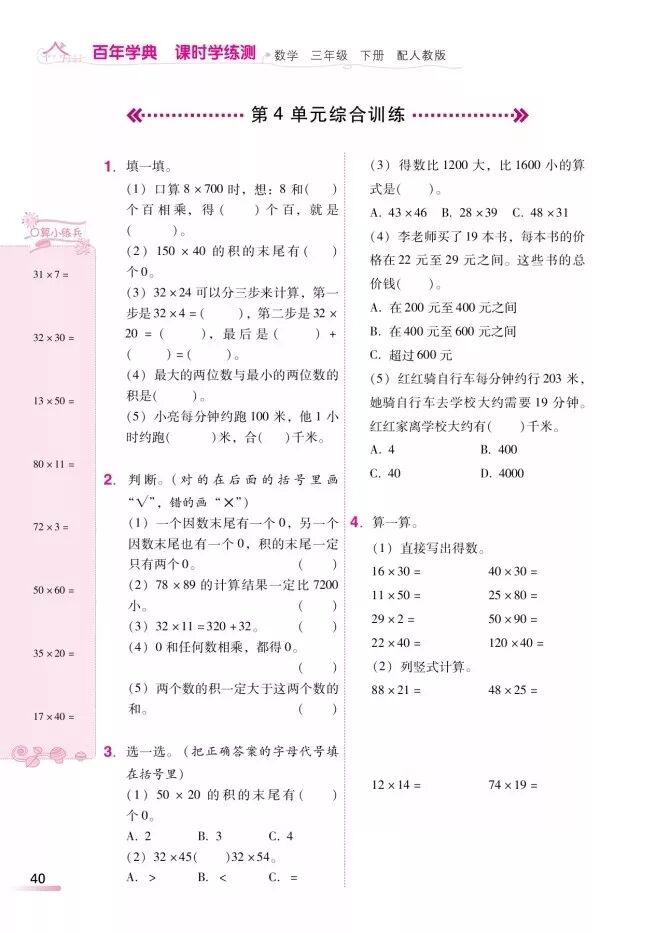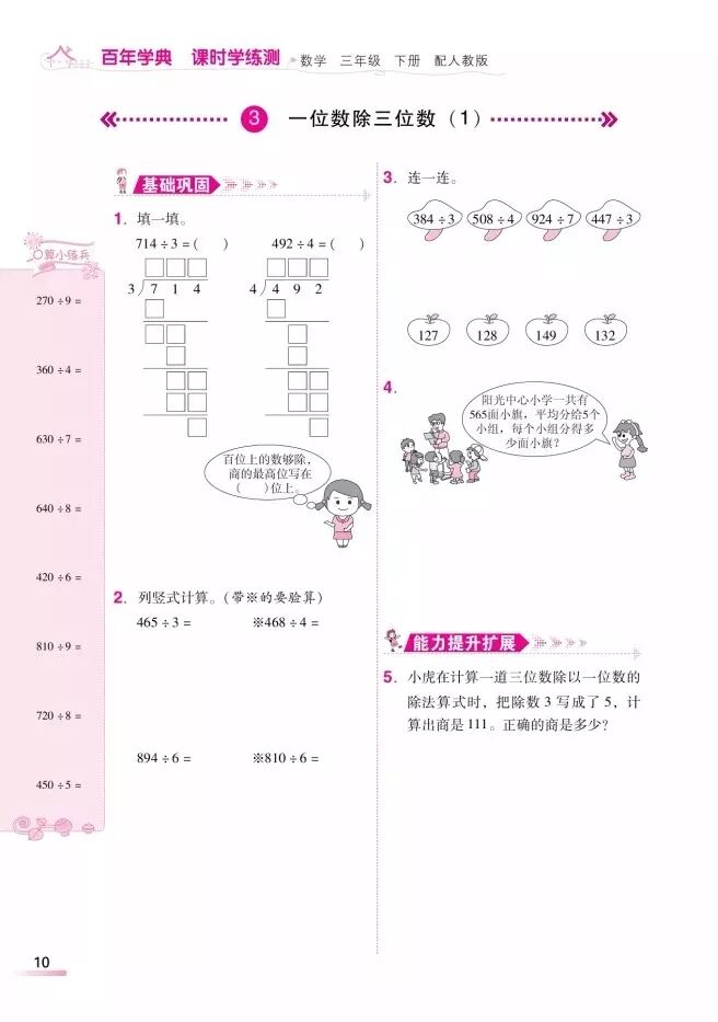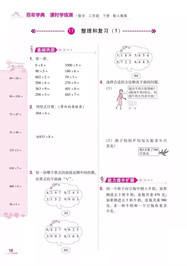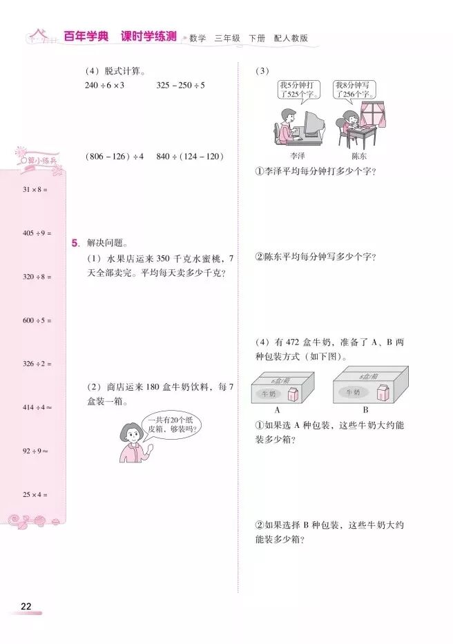 人教版数学精编《课时学练测》三年级下册1-5单元丨可下载