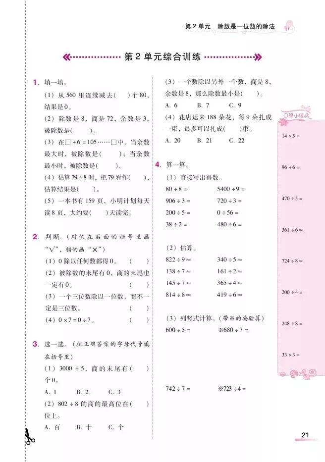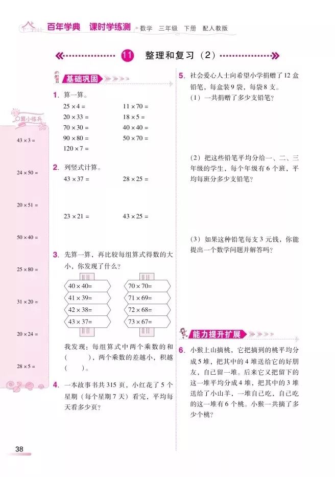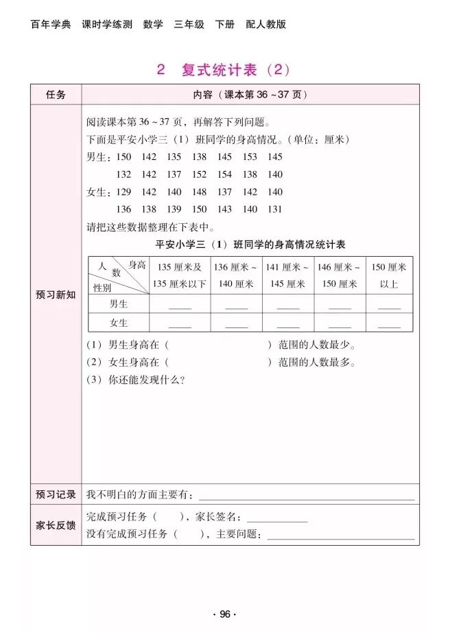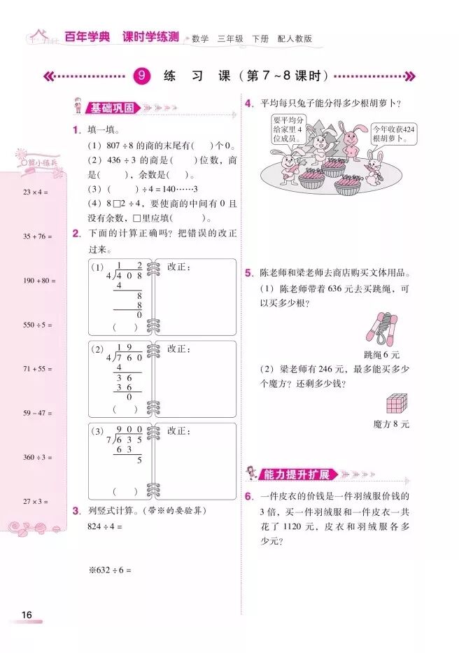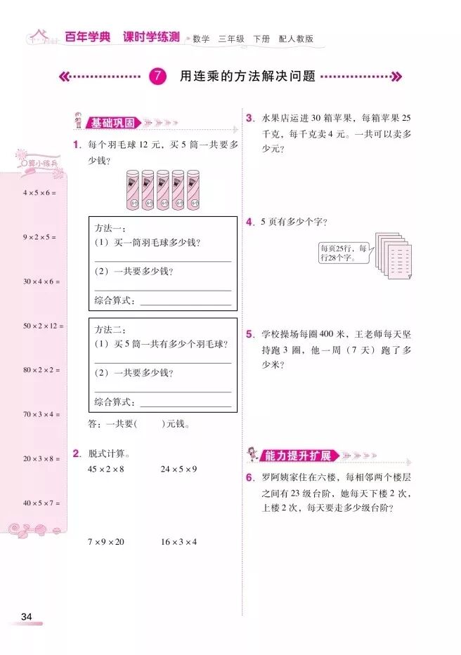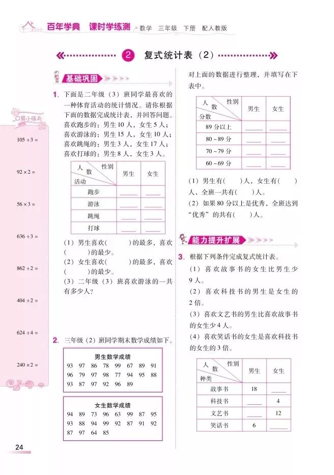人教版数学精编《课时学练测》三年级下册1-5单元丨可下载