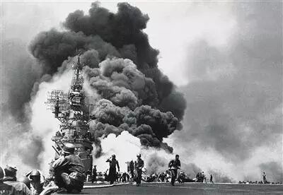 中途岛海战:于1942年6月4日展开,是第二次世界大战的一场重要战役。美国海军不仅在此战役中成功击退了日本海军对中途环礁的攻击,还因此得到了太平洋战区的主动权,所以这场仗可说是太平洋战区的转折点。日本在珊瑚海海战之后仅一个月就已经把中途岛拟定为下一个攻击目标。这不仅能报美国空军空袭东京的一箭之仇(当时日本高级将领中有认为空袭东京的飞机是从中途岛起飞的),还能敞开夏威夷群岛的大门,防止美军从夏威夷方面出动并攻击日本。日本海军想借此机会将美国太平洋舰队残余的军舰引到中途岛一举歼灭。为达到该目的,日本海军几乎倾巢而出,投入大半兵力,舰队规模甚至超越后来史上最大海战莱特湾海战时的联合舰队。是日本海军在二战中最大的战略进攻,然而由于珊瑚海海战的牵制,使联合舰队少派遣两艘航空母舰——即受伤的“翔鹤”、以及缺编飞行员的“瑞鹤”号,对作战造成极严重的影响。美国著名海军历史学家塞缪尔·E·莫里森把美国海军在中途岛海战中的胜利称之为“情报的胜利”。美国海军提前发觉日本海军的计划,是日本海军失利的最主要原因。