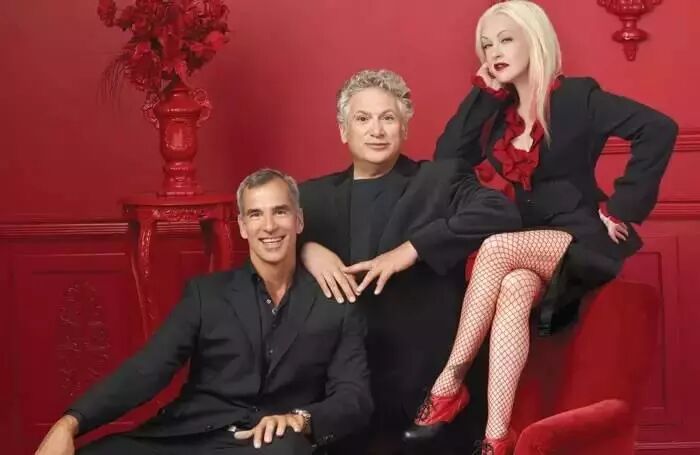 (音乐剧《长靴妖姬》主创三人 从左到右 导演杰瑞·米歇尔 编剧哈维·费斯特恩、词曲辛迪·劳帕)