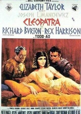 《埃及艳后》是好莱坞电影史上投资最大同时也赔得最惨的一部古装巨制。用现在的眼光来看,我们很难相信传唱不绝的经典影片《埃及艳后》竟然是当年的票房毒药。不过本片却成全了理查德·伯顿与伊丽莎白·泰勒的世纪恋情,但却害得拍摄此片的二十世纪福斯公司几乎破产。不过《埃及艳后》的确以惊人气魄重现了古罗马时代一段波涛壮阔的历史,导演约瑟夫·L·曼凯维奇驾驭大场面的功力还是不简单,片中几场战役和女王入城的场面则使人叹为观止。
