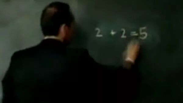 换言之,如果有人反复将一种反常识的东西强行灌输给你,不接受就威胁你,那就是“洗脑”。比如,在一个反映德国纳粹进行“洗脑教育”的影片中就有这样一个典型情节:一位纳粹教师在教室的黑板上写下了“2+2=5”并领着小学生们一起大声地念,有个不念的就让他上去填写“2+2=?”那个小学生犹豫一会儿之后果断地写下了“2+2=4”,结果当场就被撞进来的几个戴纳粹标志的党卫军杀害了,血溅黑板,学生愕然!这时,那位纳粹教师又用黑板擦擦掉流着血迹的“4”重新写上了“5”并带领大家一起念:“2+2=5”!于是,全班学生惊恐地望了望那群凶神恶煞般的党卫军刽子手,被迫一起用颤抖的声音念出了:“2+2=5”!“2+2=5”……这就是胁迫。用胁迫的方式让你接受反常识的谬论。用戈培尔的“名言”来说就是:“谎言重复一万遍就会变成真理。”