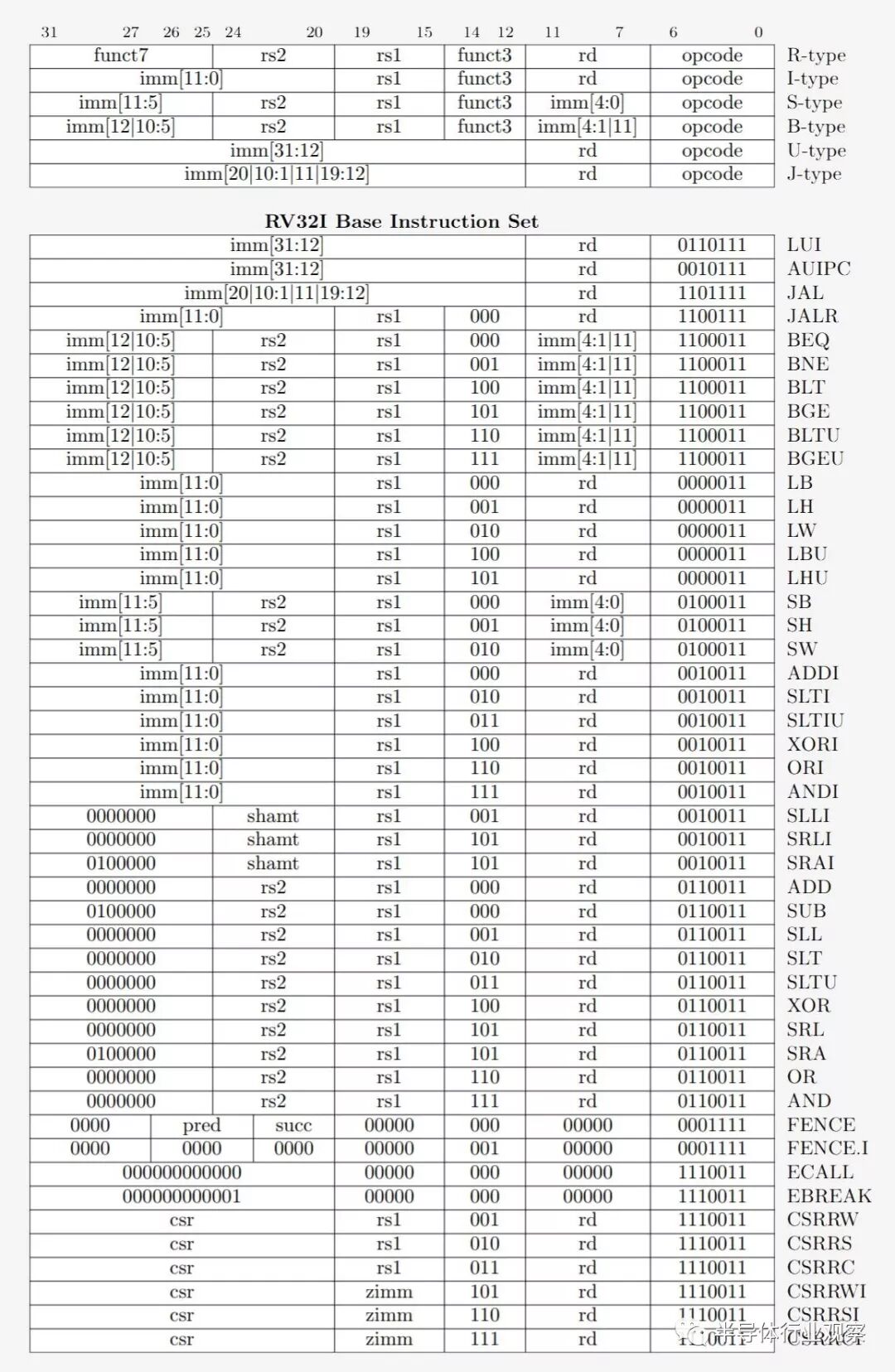 一些RISC-V指令的示例。右边的操作码是7位,它决定了指令的类型。每条指令还包含要使用的寄存器和要执行的功能的位。这就是汇编指令如何被分解成二进制以便CPU理解。