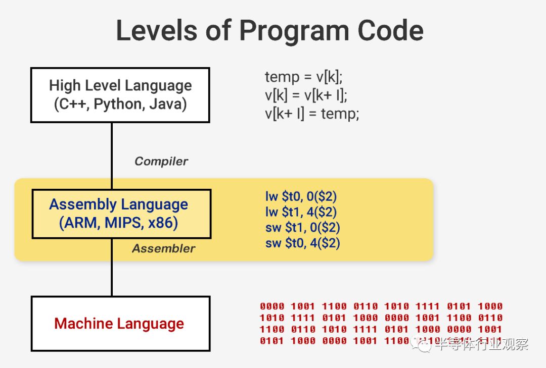 当你想要运行一个像操作系统或游戏这样的程序时,程序本身就是CPU要执行的一系列指令。这些指令从内存中加载,并在一个简单的处理器上逐一执行,直到程序完成。当软件开发人员用高级语言(如C++或Python)编写程序时,处理器无法理解。它只能理解1和0,所以我们需要一种方式来表示这种格式的代码。