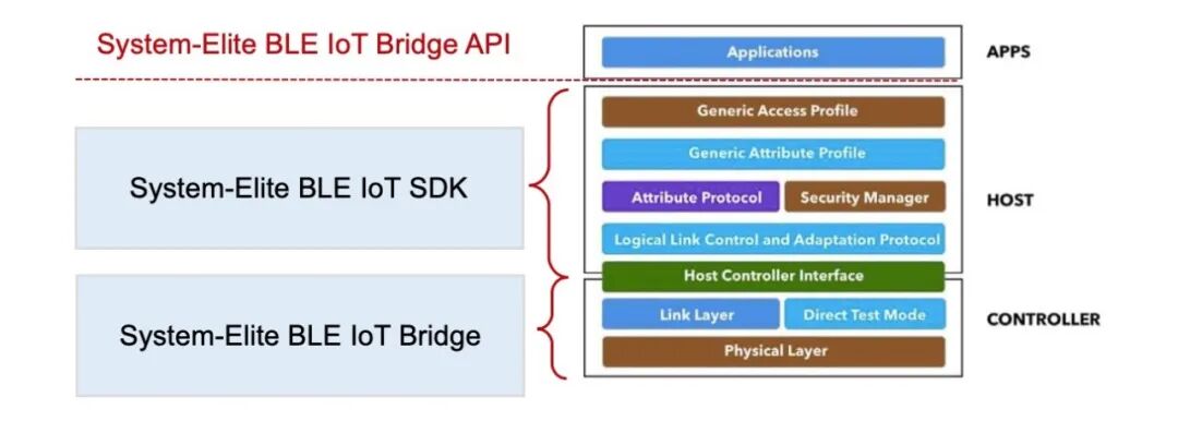 它将低功耗蓝牙技术集成到单个 IP 中,并可灵活地与MCU原厂提供的MCU 芯片结合成为单芯片SoC或多芯片堆叠的MCP封装。System-Elite BLE IoT Bridge IP专为新兴IoT物联网产品应用而设计,提供一种最快速的方式,帮助 SoC或MCU 厂商不必从零开始进行蓝牙的开发,就可让MCU具备低功耗蓝牙功能,与智能手机互连上网,成为具备上云能力的IoT物联网装置。