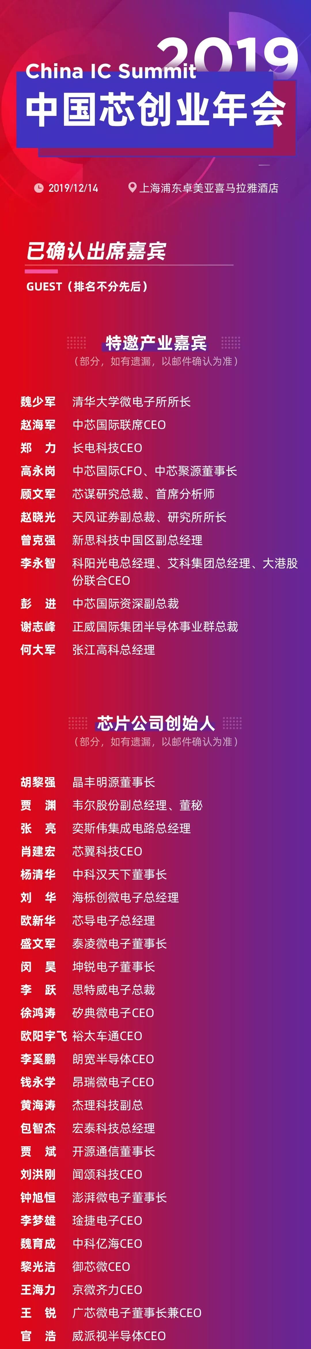 附:2019芯创年会议程(含2019参会名单,最新职务后续公布为准)