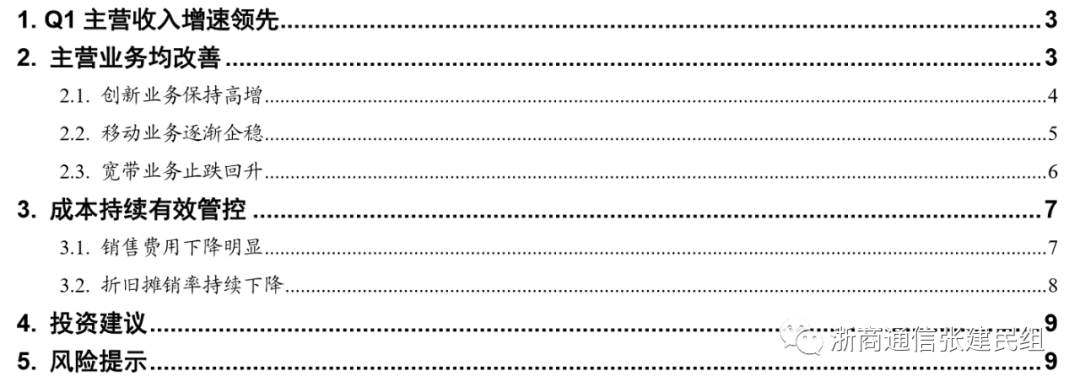 1)网络运行及支撑成本同比上升1.6%,主要由于网络规模扩大导致铁塔使用费增加;2)持续推进激励机制改革,同时加大引入创新人才,人工成本比去年同期上升15.2%;3)其他营业成本及管理费用比去年同期上升28.0%,主要由于ICT业务快速增长导致相关服务成本增加,以及对创新业务的技术支撑的投入增加,处置固定资产损失和坏账损失的增加。