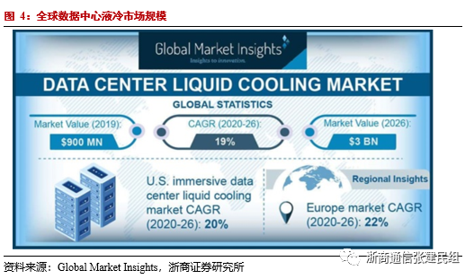 Global Market Insights数据显示,2019年全球数据中心液冷市场规模为9亿美金,预计2026年将达到30亿美金,2020-2026年复合增速达到19%。