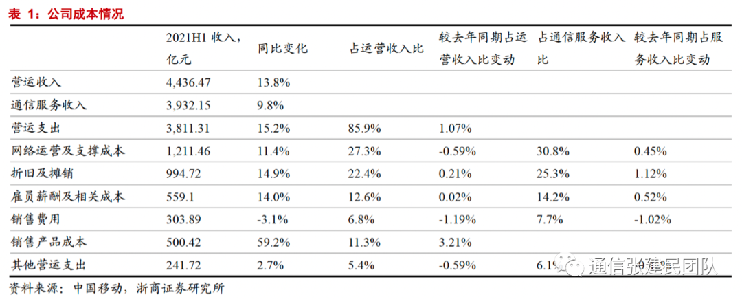 1) 网络运营及支撑成本1211亿元(同比增长11.4%)。公司网络运营及支撑成本主要包括网络维护费;IT及业务平台维护支撑费,ICT业务成本;光猫、魔百和摊销等。增速较快主要由于新基建项目加速建成投产以及转型投入增加。