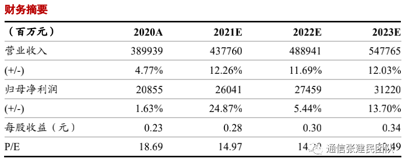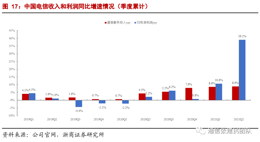 基于发展的均衡性、领先的创新能力等优势,在行业开展高质量发展以来,公司通信服务业务发展顺利,2019年以来收入增速领跑行业。我们判断在5G和数字经济发展趋势下,公司有望进一步延续该优势,展现出更为优秀的成长性。![]()