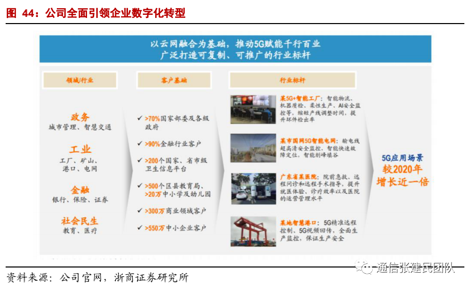 政企:2020年产业数字化收入规模和市场份额行业领先。5G行业应用有望开始规模落地,我们预计公司产业数字化收入有望加速增长。