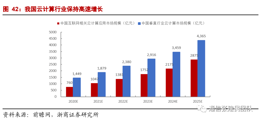 未来我国云计算市场规模将持续快速增长,前瞻网数据显示,2020年,我国互联网相关、垂直行业云计算市场规模分别为760亿元、1449亿元,预计到2025年将分别达到2875亿元、4365亿元,复合增速分别为30%、25%。![]()