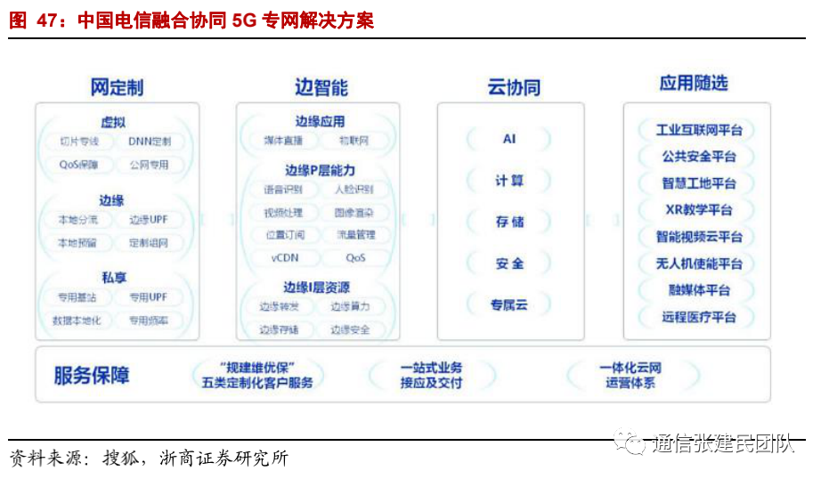 公司提供“致远”“比邻”“如翼”三类定制网服务模式,为行业客户提供安全可信、自主可控的专用信息化基础设施和定制网融合服务,实现“云网一体、按需定制”。![]()