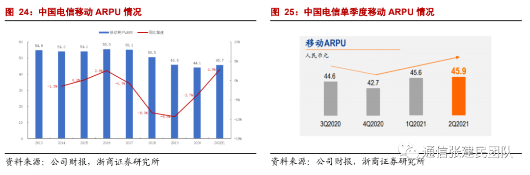 个人:公司在新增移动用户数行业领先,21Q1 ARPU值45.6元实现回升,21Q2进一步提升至45.9元,移动业务收入增速有望继续乐观。