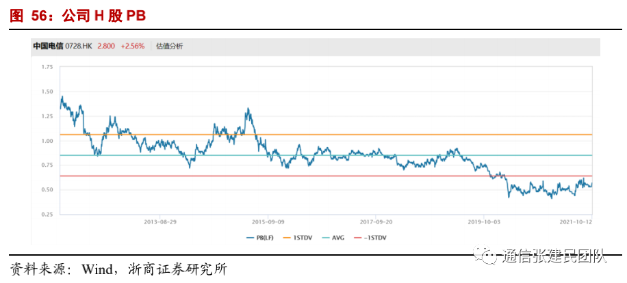 2020年上半年,公司通信服务收入增速V型反转,利润增速实现转正,此后收入利润增速逐季放大。2020年全年公司实现通信服务收入3738亿元,同比增长4.53%,实现股东应占利润209亿元,同比增长1.62%。2021年上半年,公司实现通信服务收入1871亿元,同比增长8.8%,股东应占利润为177.4亿元,同比增长27.2%。![]()