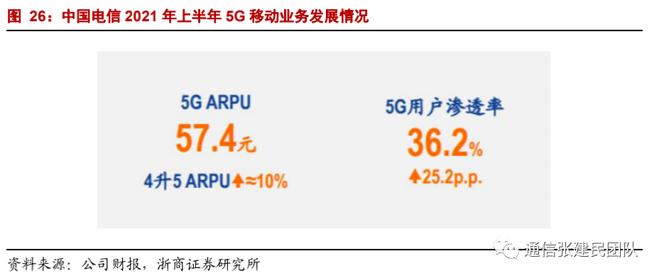 5G渗透率提升带动公司移动用户ARPU企稳恢复,2021年上半年,公司5G用户ARPU达到57.4元,5G迁转前后ARPU提升10%。2021年上半年移动用户ARPU45.7元,同比增长2.9%,二季度单季ARPU达到45.9元,较一季度45.6元进一步提升。![]()