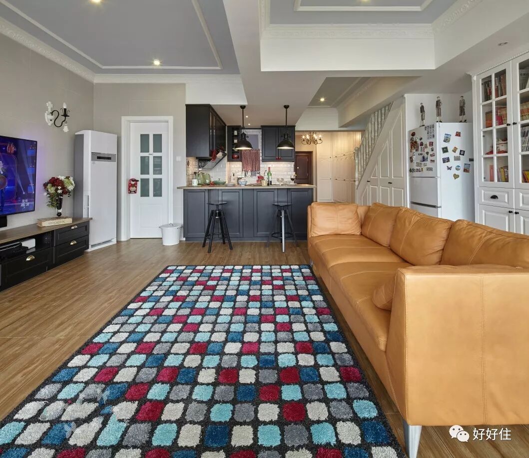 ▲ 开阔的客厅与大地毯满足了孩子在追赶跑跳的同时又减少了发生磕碰的可能。