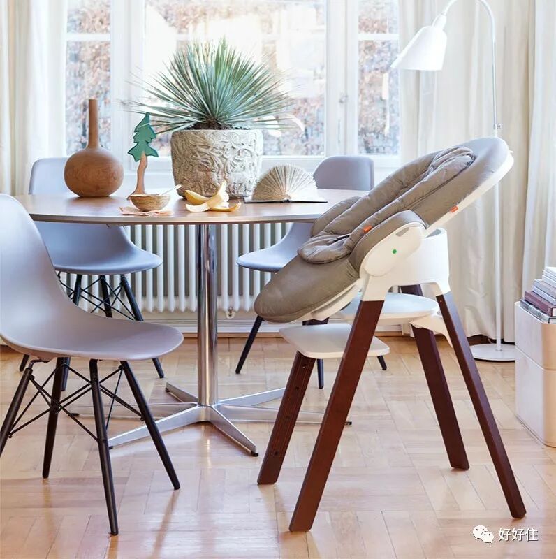 多功能婴童椅也是众多家庭一致推荐的好物,柔软厚实的摇摇床座垫给宝宝较为舒适的承托,可调节角度和安全带的功能又能让爸妈轻松的给孩子喂食。并且随著孩子的成长,婴童椅还可以加装可拆卸的玩具架。上图来自北欧的婴幼用品品牌stokke,售价为1790元。
