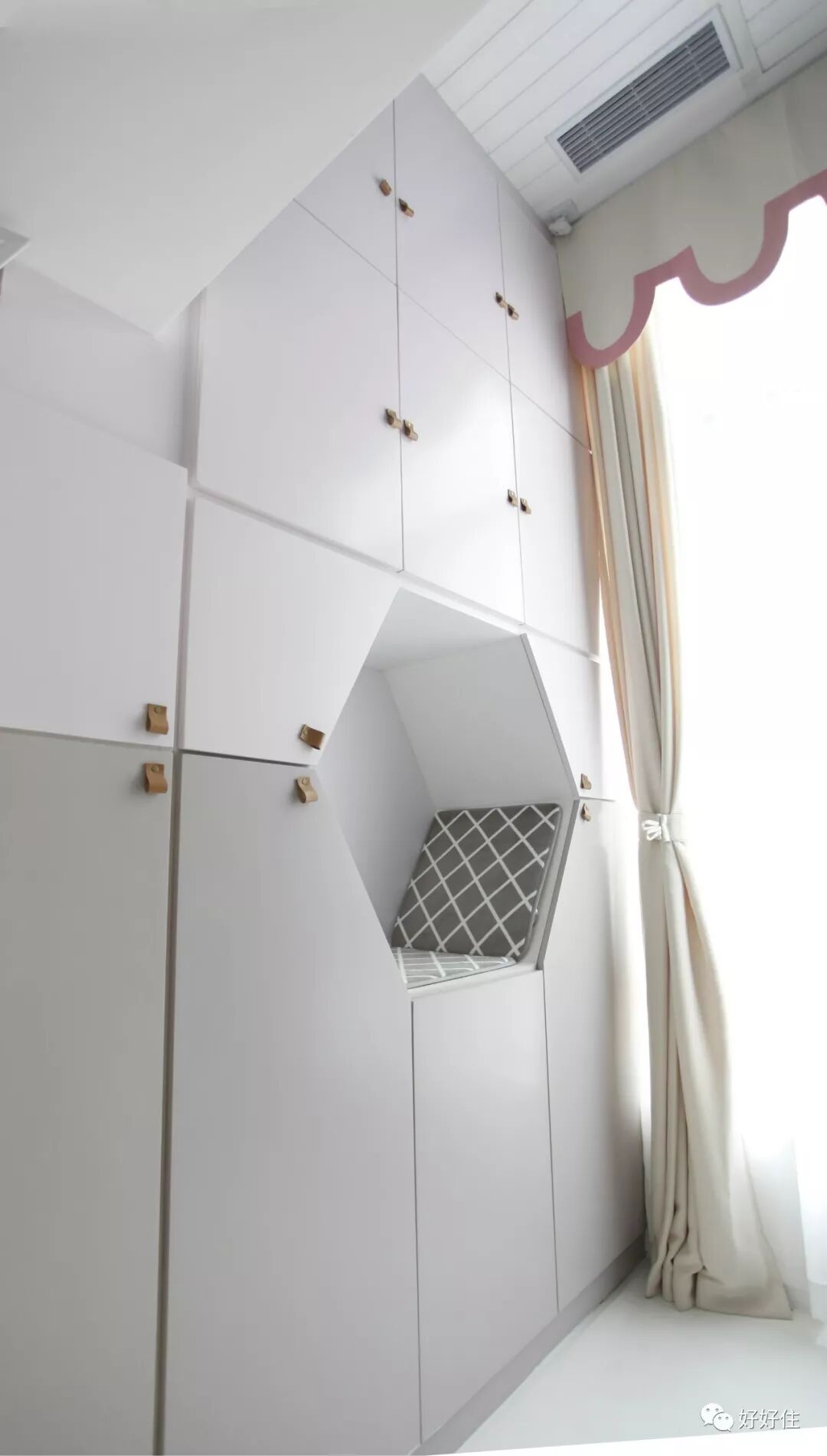 ▲ 笑笑丹子还在衣柜里做了一个六角形的阅读区,孩子可以钻进去看书。