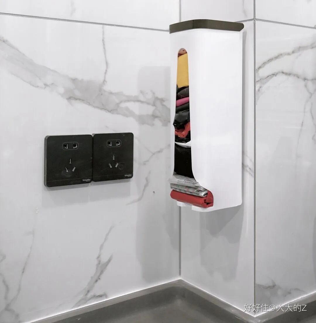 △ @大大的Z:塑料袋盒,环保经济又不占地,还送了磁吸可以直接吸在冰箱上,我用吸盘直接吸在了墙角,NICE!