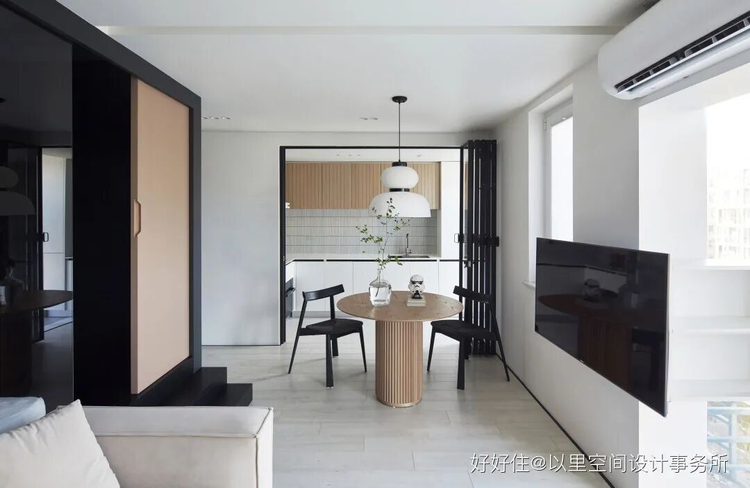 设计师@以里空间设计事务所 近期设计了一套小宅,屋主是一对年轻的伴侣,不像大多数人都执着于「房子越大越好」,他们偏偏迷恋小空间带来的安全感。