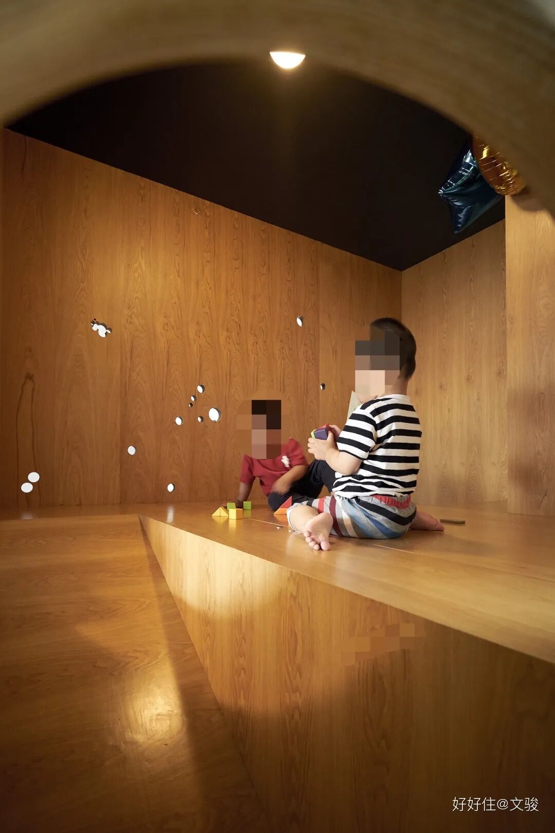 墙上的小圆洞是@文骏儿子的星座,纵使这个设计在未来也许会被儿子嘲笑,他还是坚持做出来。