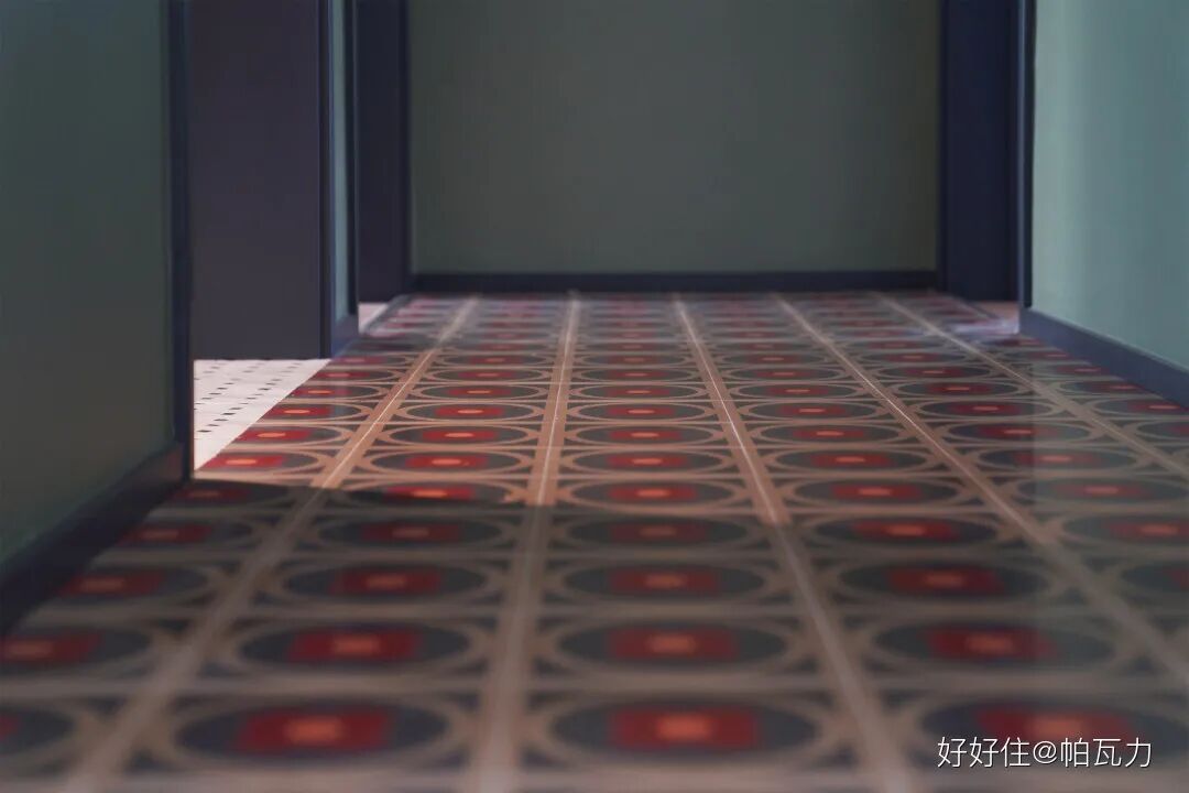 屋主很喜欢色彩,但设计师在用色上是相对克制的。除了厨卫配色比较浓重,走廊也是点睛之笔。作为公共空间与私密性空间的过渡,灰调的红绿撞色,视觉上更凸出空间转换的通道感,极具复古氛围。