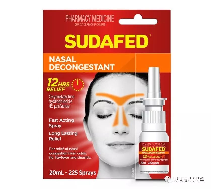 还有一种鼻喷,Sudafed Nasal Decongestant Spray (Oxymetazoline Hydrochloride 盐酸伪麻黄碱鼻喷剂)