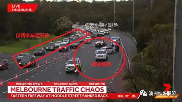 因为这两起事故,早上 7 点左右,Eastern Freeway 上的车流开始拥堵,警方清理现场后关闭了其中两个车道。