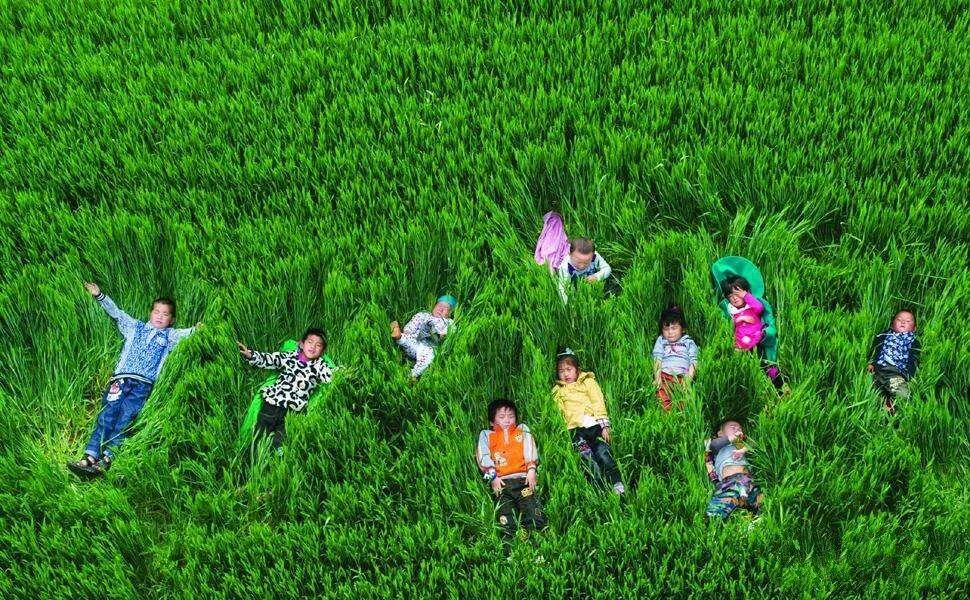 因疫苗致残的孩子,躺在麦田之上。