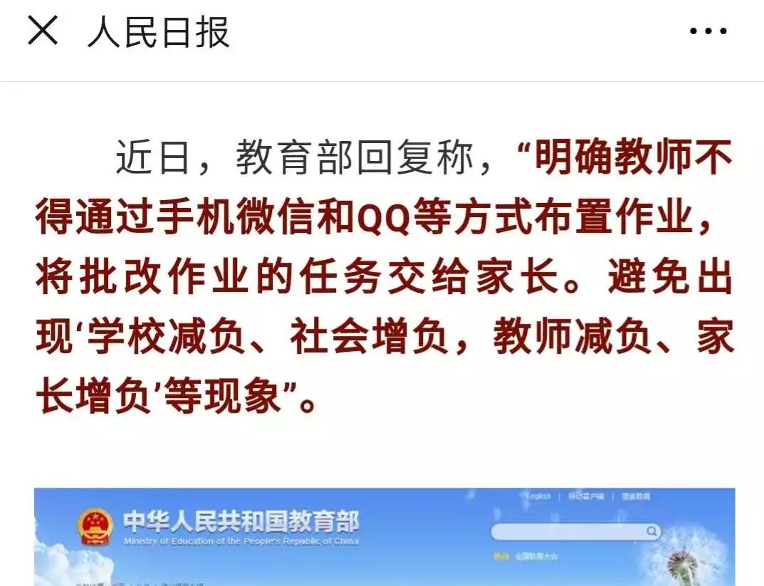 昨天,新闻报道称,因有政协委员提出《关于停止小学老师用手机微信和QQ对学生及家长布置和提交作业的提案》,教育部明确规定: