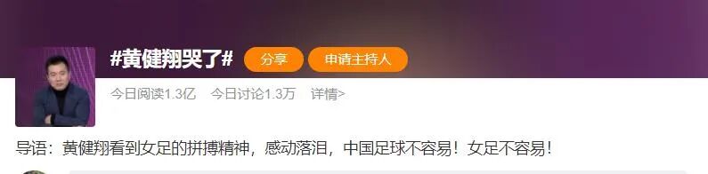 关于为什么哭了,黄健翔说,这是喜悦的泪水,是光荣的泪水,也是复杂的泪水: