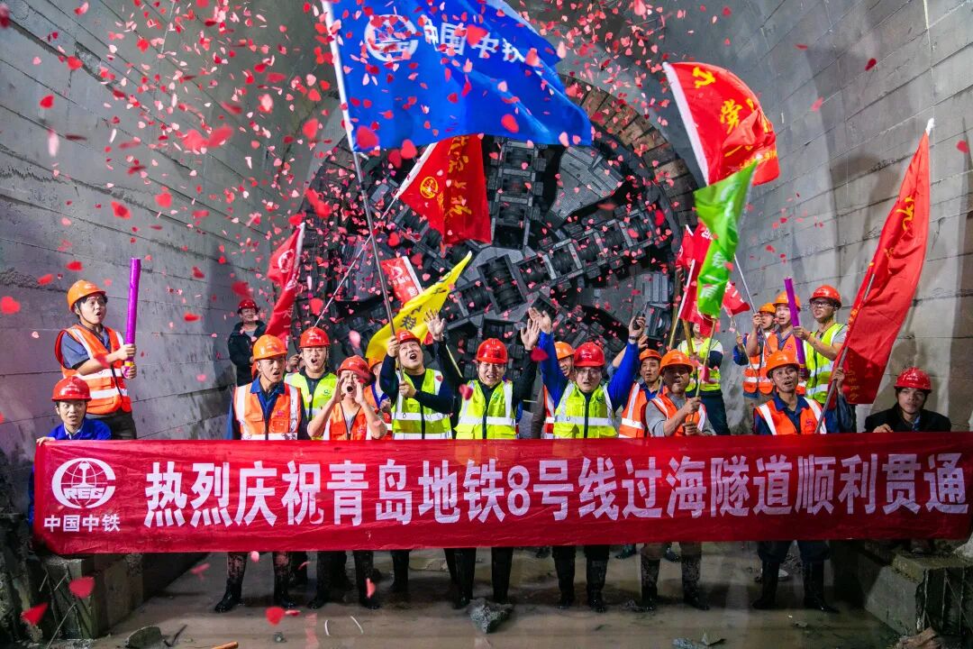 青岛市地铁8号线工程北段全长48.3km,城轨公司承担大洋站~青岛北站东侧过海段区间,包含明挖区间1段、盾构区间1段、风井2座及6座联络通道。盾构隧道全长7.8km,其中海域段隧道5.4km,为目前国内最长地铁海底隧道。施工前邀请院士、设计大师对施工开展“会诊把脉”,成立技术攻关小组,攻克了盾构长距离穿越断层破碎带、海底高压开仓换刀、海底精准对接、海底盾构机解体等多项关键技术,仅用2年零7个月顺利完成5.4km过海段掘进,泥水盾构实现220米/月掘进速度,在创造了“青岛速度”。