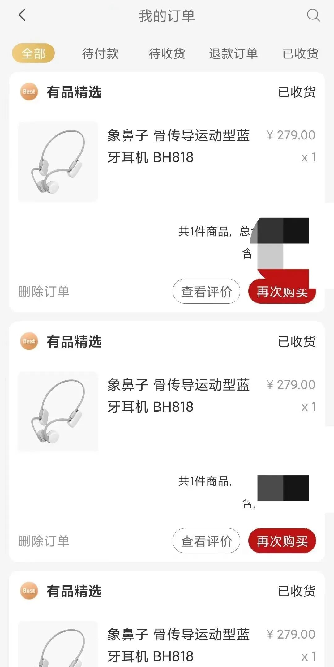 小米有品部分订单▲