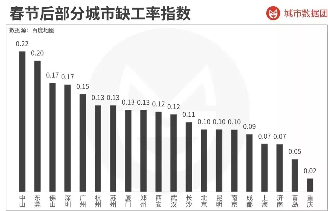 (说明:数据来源为百度地图。缺工规模指数不等于实际缺工规模,但可以近似代表大体缺工的规模程度。)